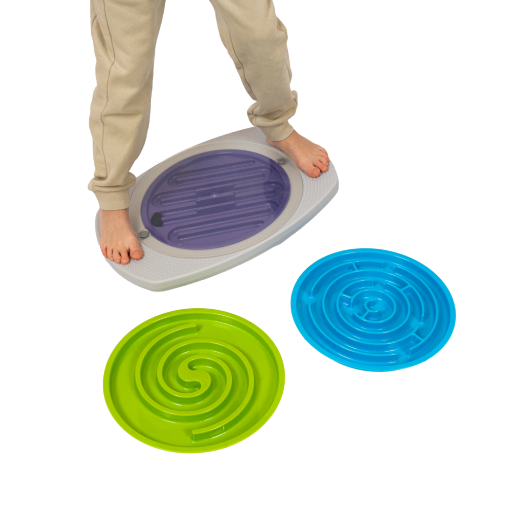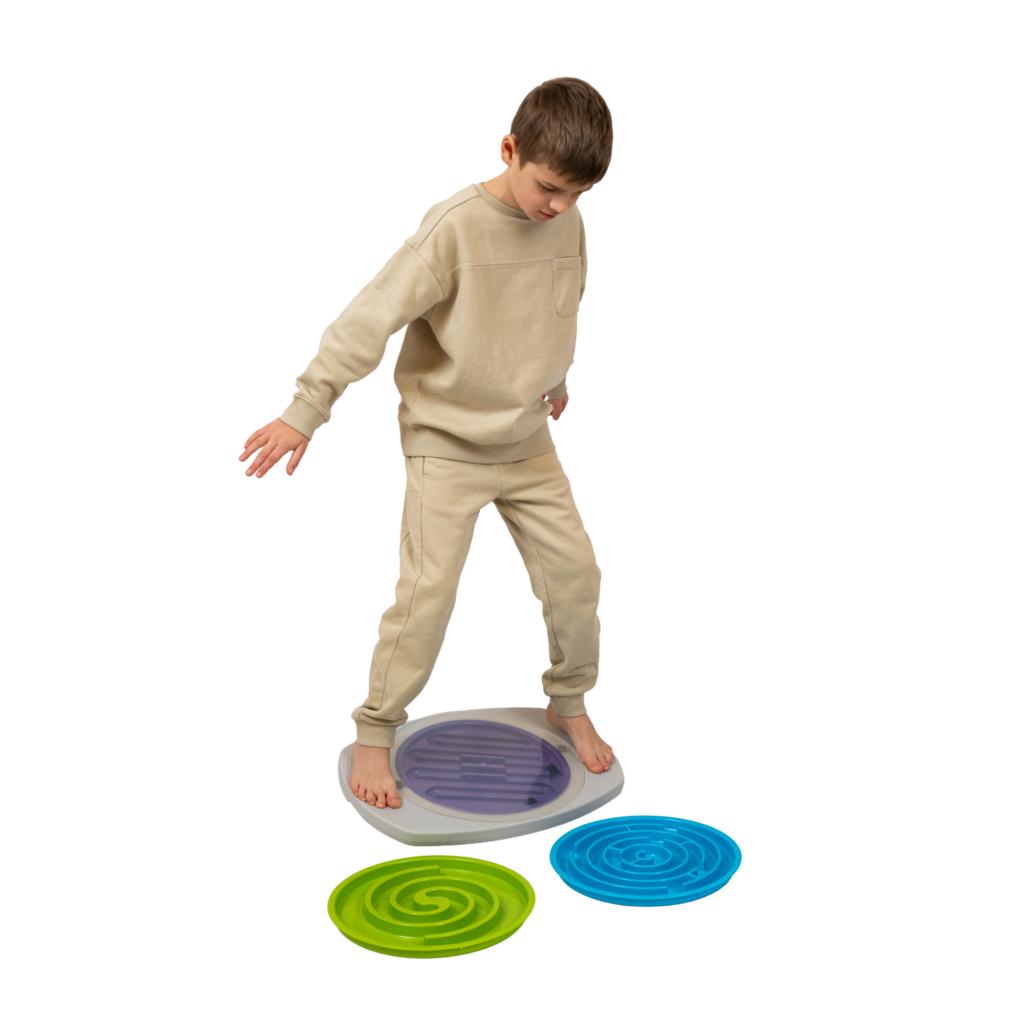 Pohybová a balanční pomůcka pro děti, která podporuje rozvoj rovnováhy, koordinace a motorických dovedností zábavnou formou. Ve středu desky se nachází kulička vedená dráhou bludiště, kterou dítě ovládá přenášením váhy těla.