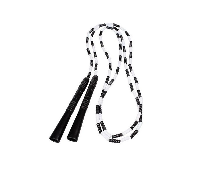 Dětské korálkové švihadlo pro zpevnění středu těla, dolních končetin a nácvik koordinace pohybů. Švihadlo je jednoduchou sportovní pomůckou, se kterou mohou holky a kluci posilovat svoji hbitost, pružnost a fyzickou aktivitu. Zkoušejte si společně zaskákat: abecedu, skoky snožmo, střídavě, na levé nožce, na pravé nožce, se zkříženými nohami nebo i pozadu a samozřejmě vajíčko. Materiál: PVC. Toto švihadlo je laděné do bílo-černé barvy, má délku 2,8 m a vyjmutím či přidáním korálků si můžete délku sami jednoduše upravit.