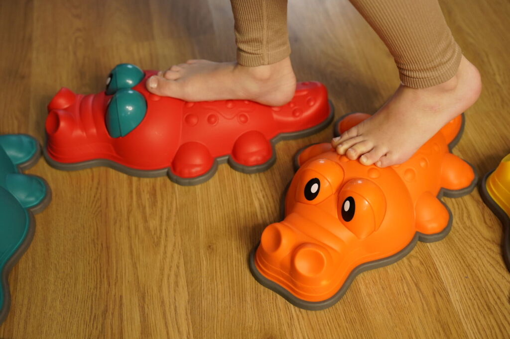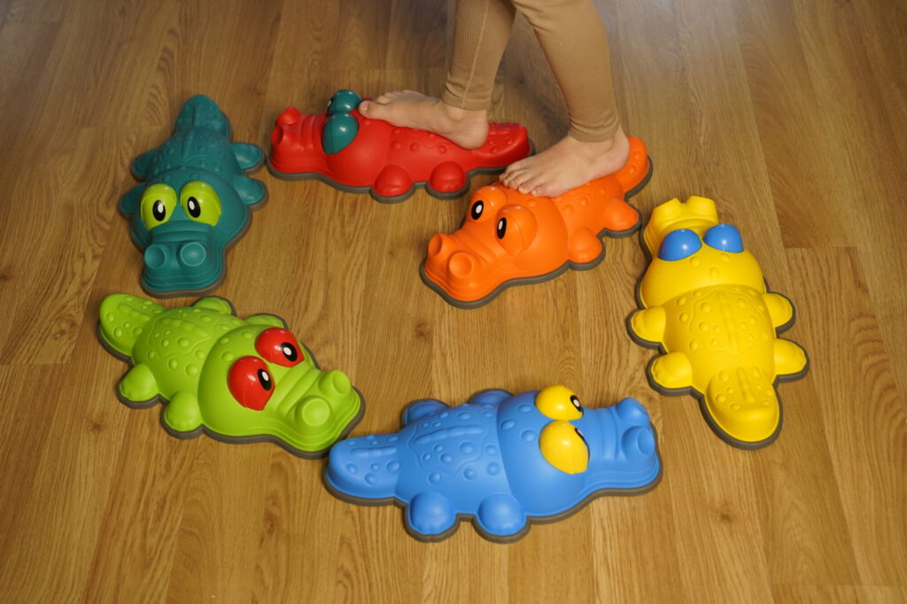 Sada 6 nášlapných kamenů ve tvaru krokodýlů pro aktivaci klenby nohou/rukou a středu těla. Ideální pomůcka pro rozvoj dětské rovnováhy, propriocepce a fasciální masáž. Krokouši mají multifunkční využití pro domácí prostředí, tělocvičnu i zahradu. Díky rozmanitým barvám jsou ideální pro stavění balančních cestiček a opičích drah! Inspiraci na cvičení najdete na mém IG/FB. Sada obsahuje 6 krokodýlů - modrý, červený, tmavě zelený, světle zelený, oranžový a žlutý. Sada obsahuje také 6 ks očí - barevné kombinace si volí dítě samo. Kameny jsou vyrobené z odolného materiálu s protiskluzovým povrchem a splňují evropské bezpečnostní normy – mají CE certifikát, takže jsou vhodné i pro profesionální využití v institucích.
