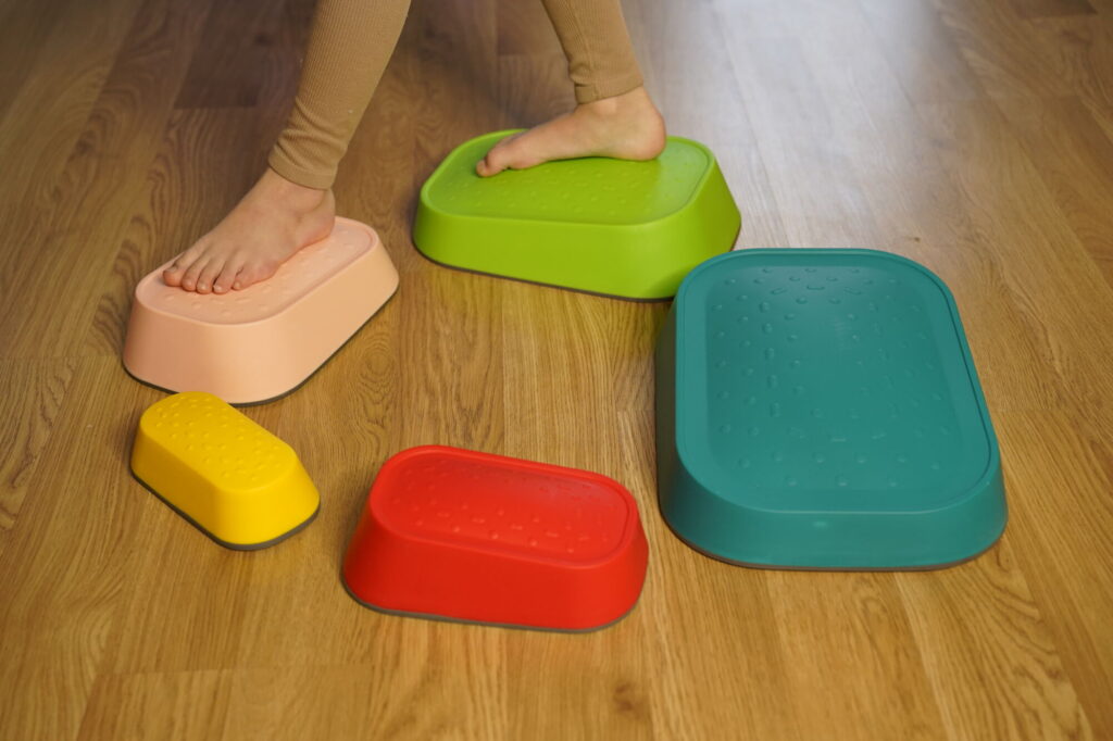 Objevte zábavnou pomůcku pro rozvoj dětské motoriky! Balanční kameny pro děti, sada Šikmé plochy, podporují rovnováhu, koordinaci pohybů i správné držení těla. Jsou ideální pro školky, herny, sportovní kroužky i domácí hraní.